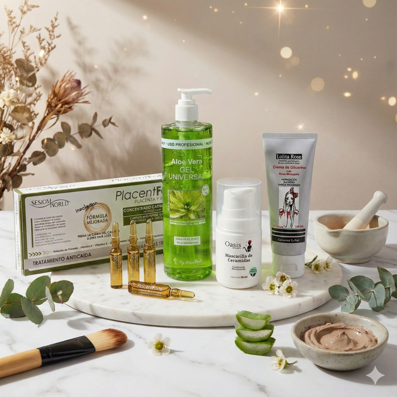 Productos de cosmética formulados para cuidar, hidratar y proteger tu piel en el día a día.